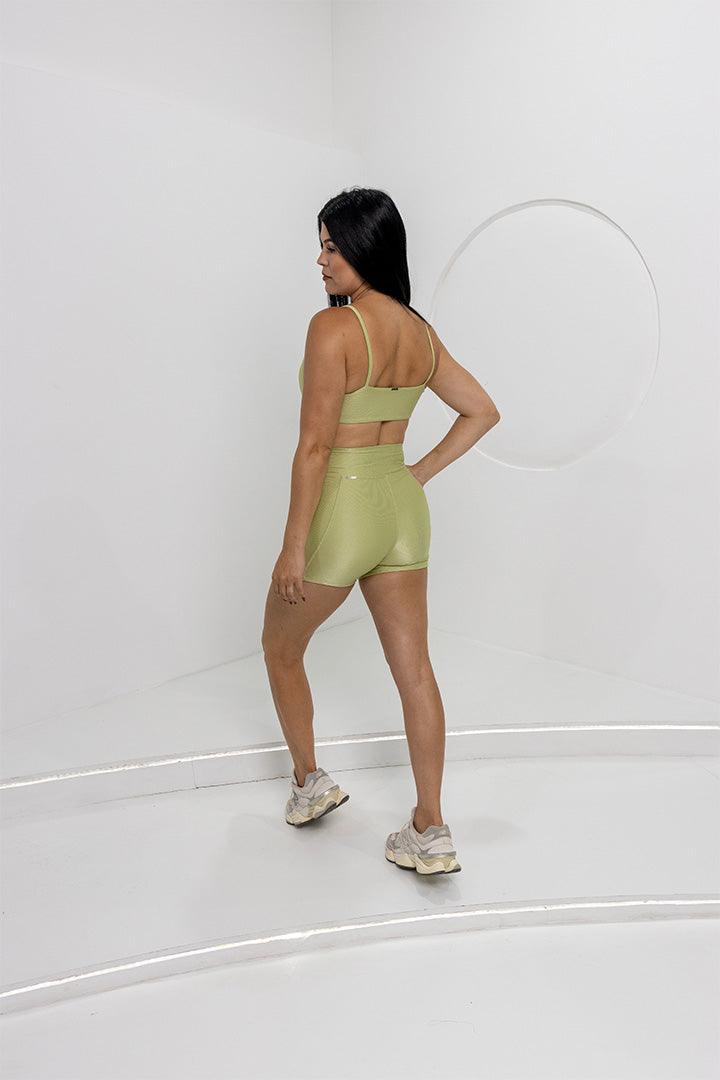 Em tecido com fio LYCRA com ótima elasticidade em superfície canelada sofisticada e com leve brilho.