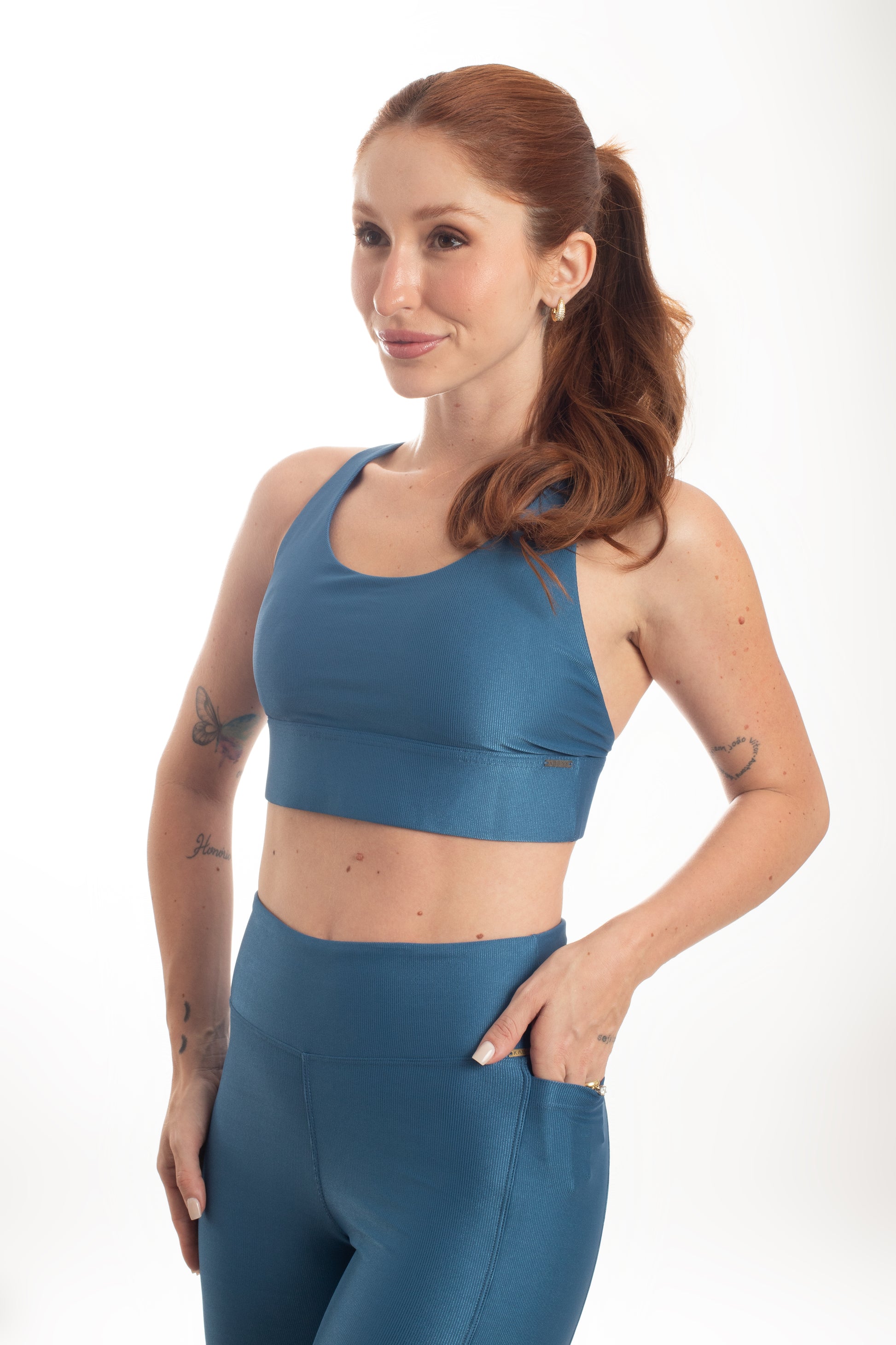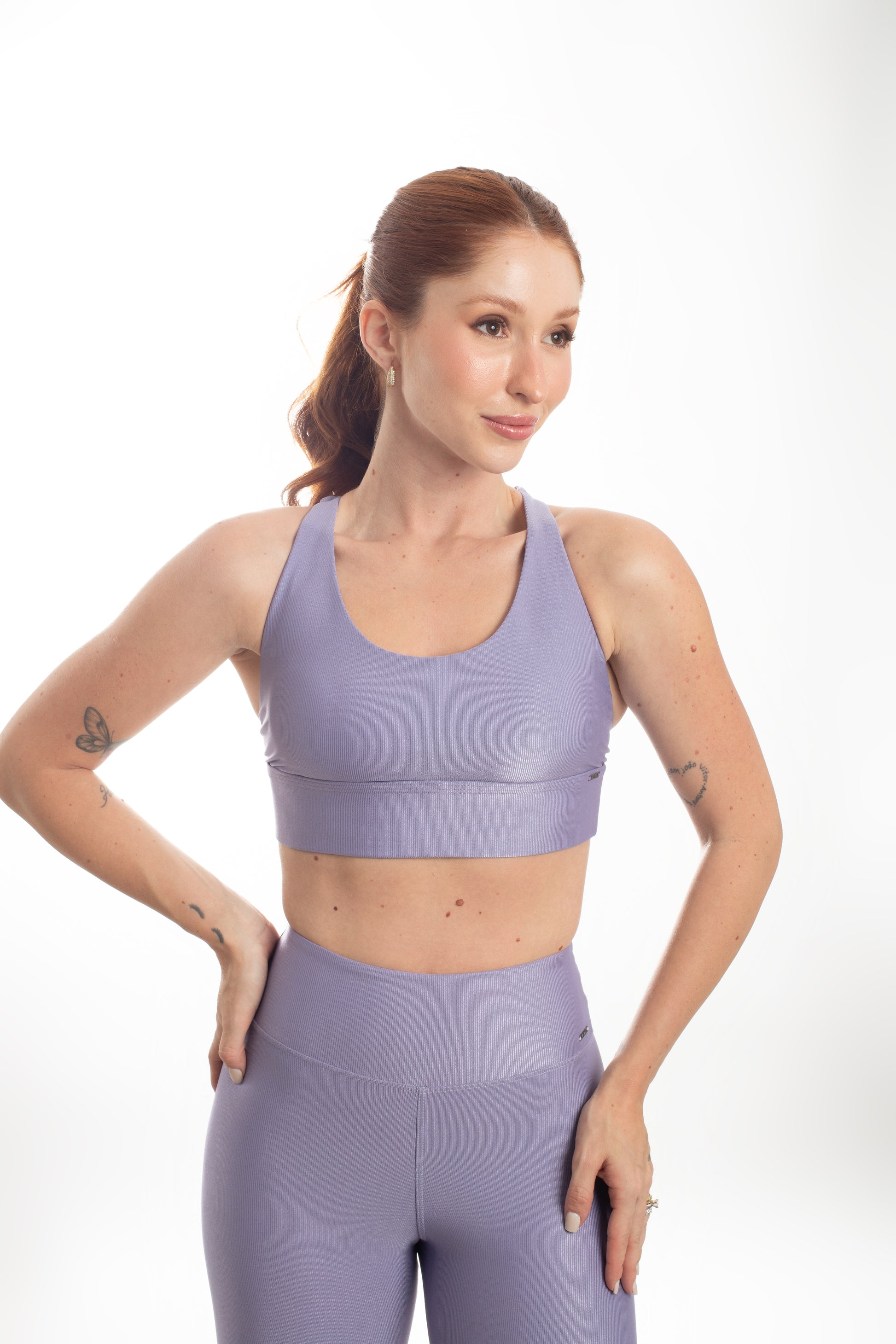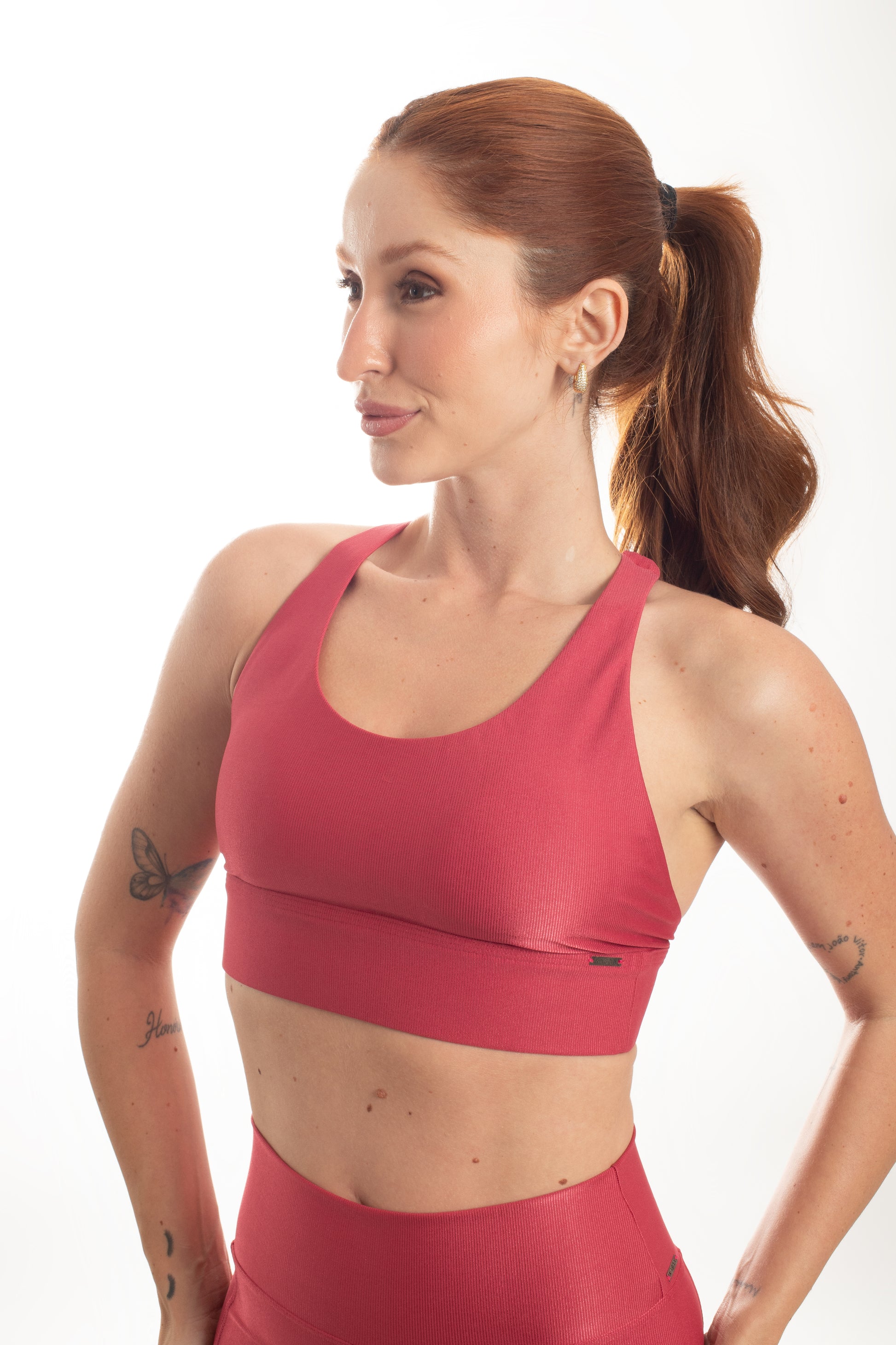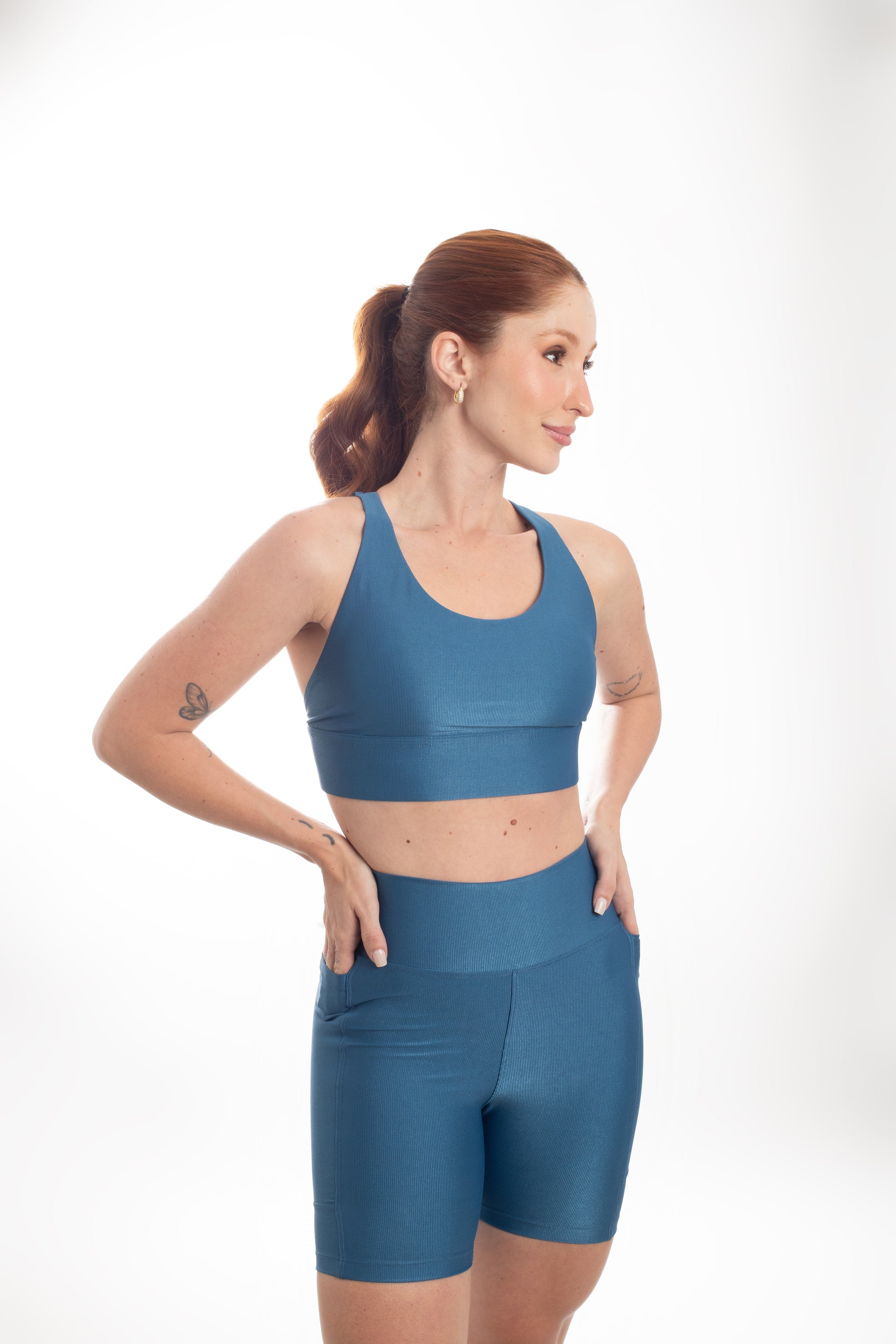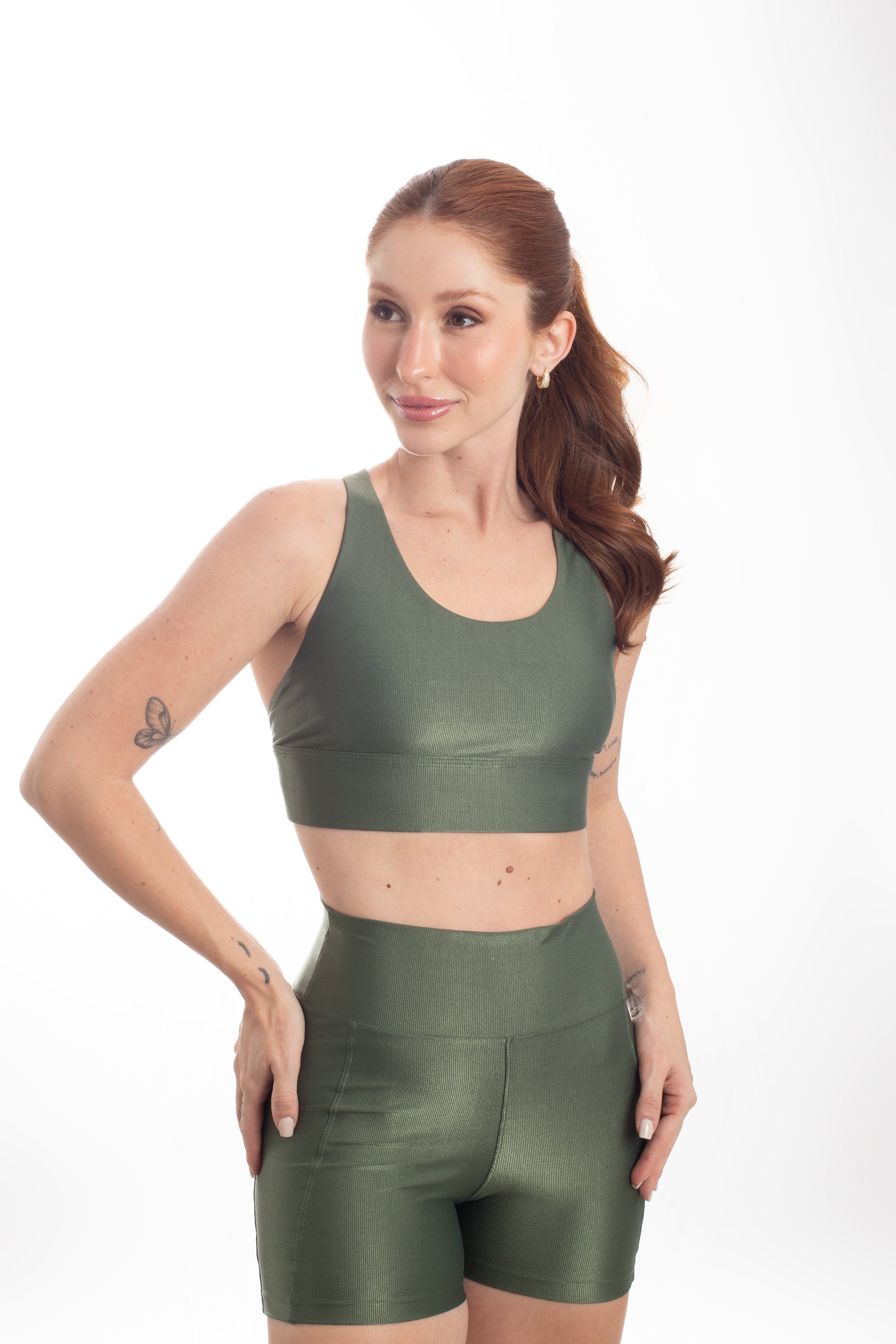 Tecido com fio LYCRA® em média compressão em superfície canelada sofisticada e com leve brilho. Top com bojo removível e forro proporcionando zero transparência.