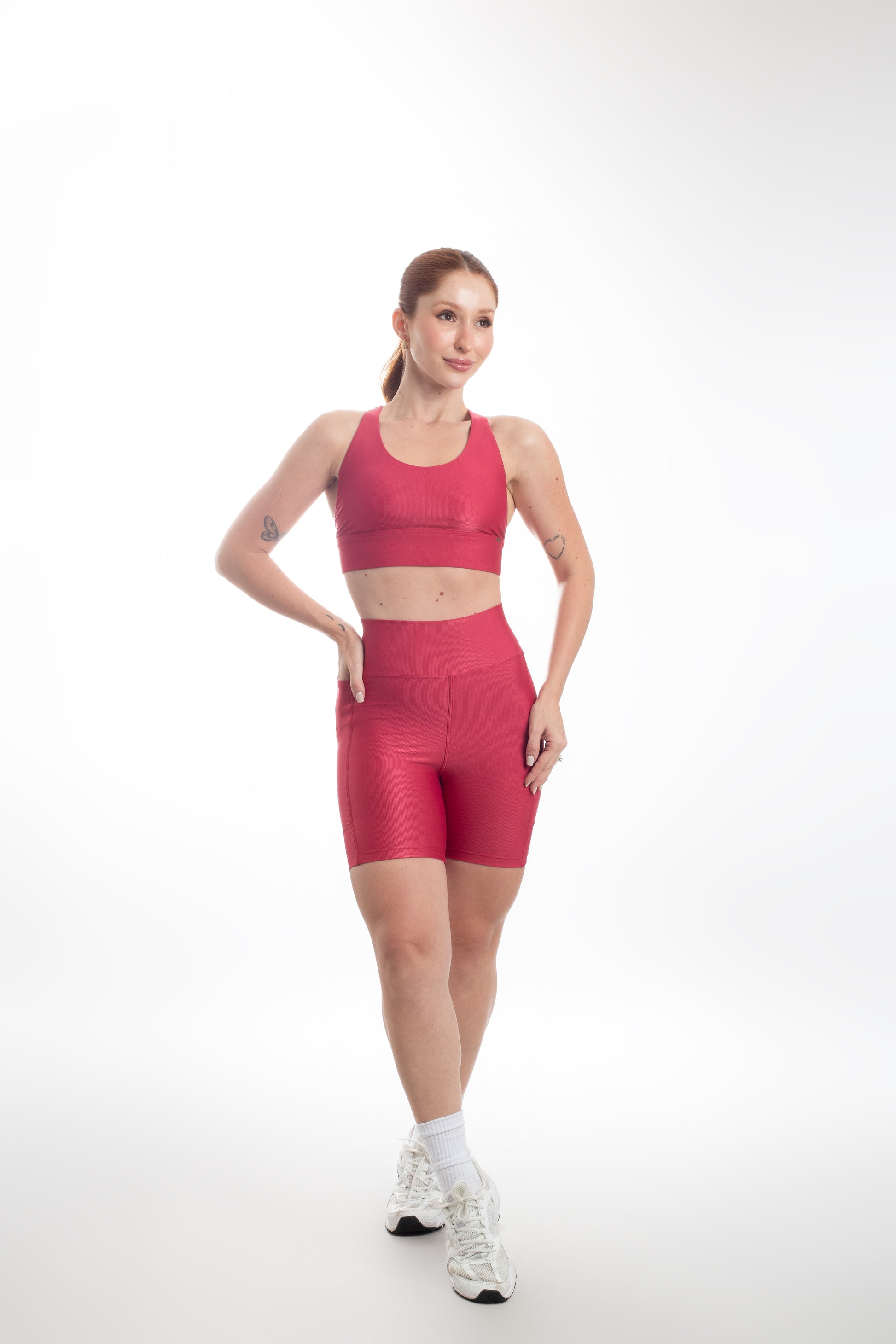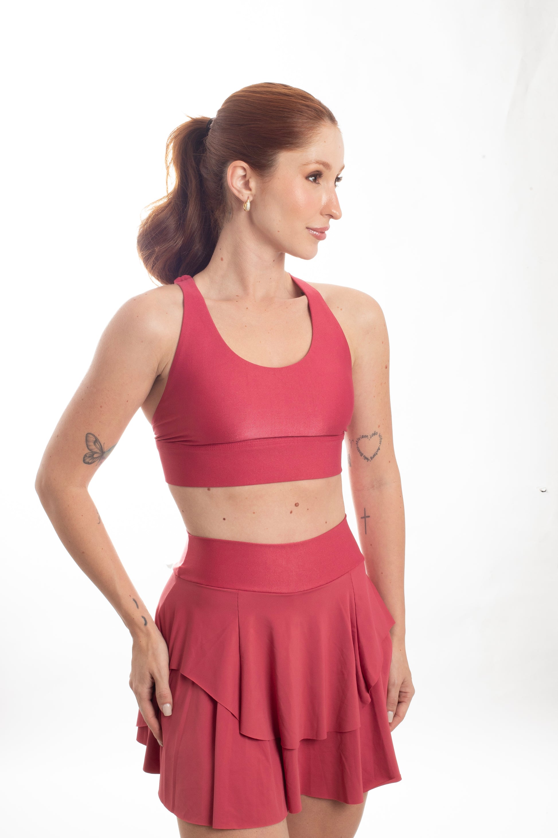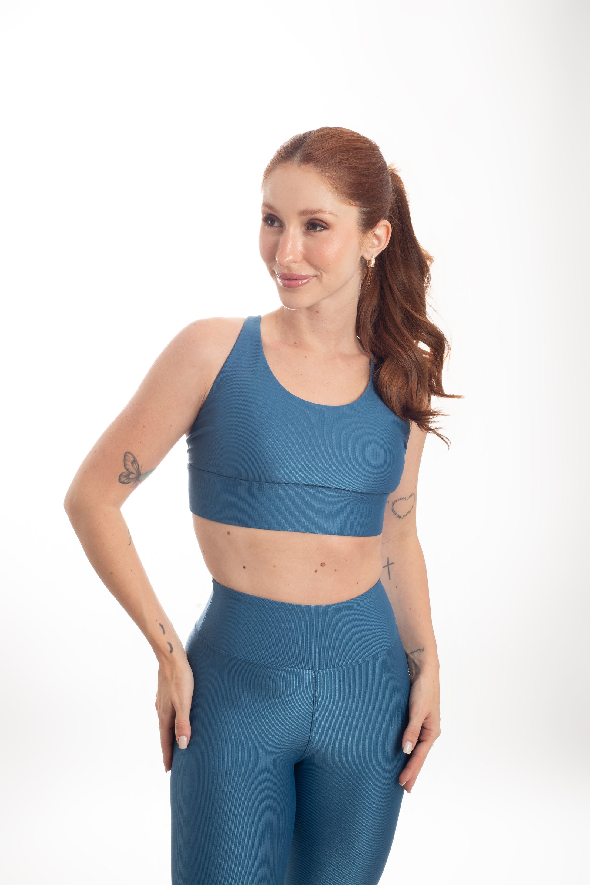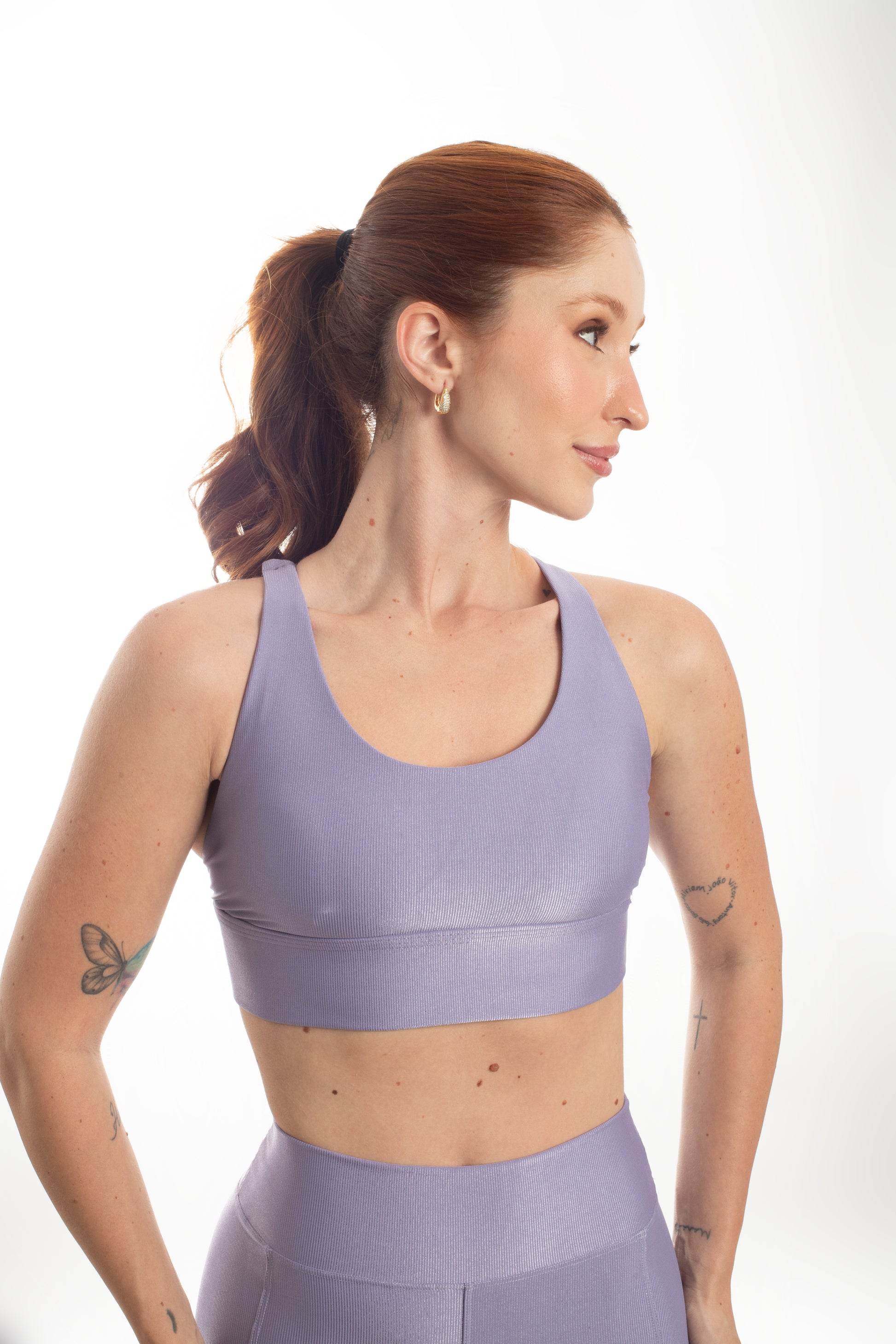 Tecido com fio LYCRA® em média compressão em superfície canelada sofisticada e com leve brilho. Top com bojo removível e forro proporcionando zero transparência.