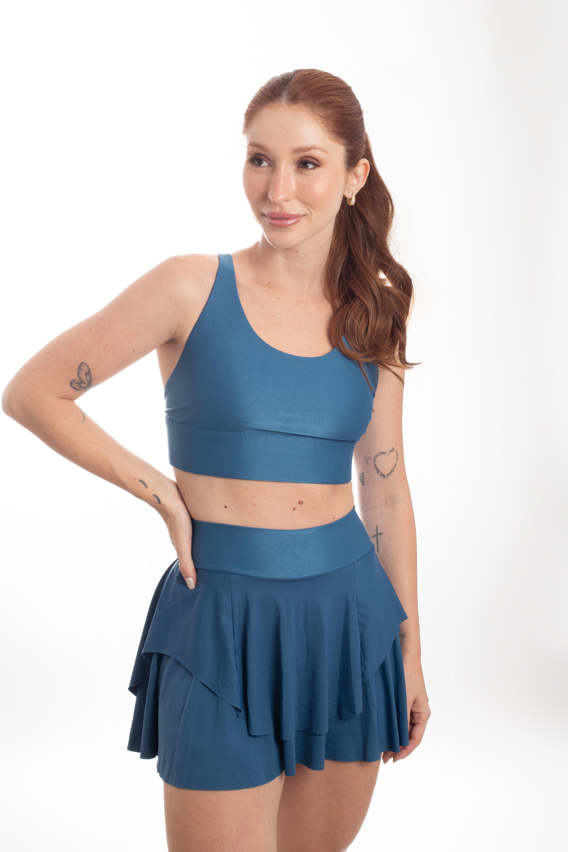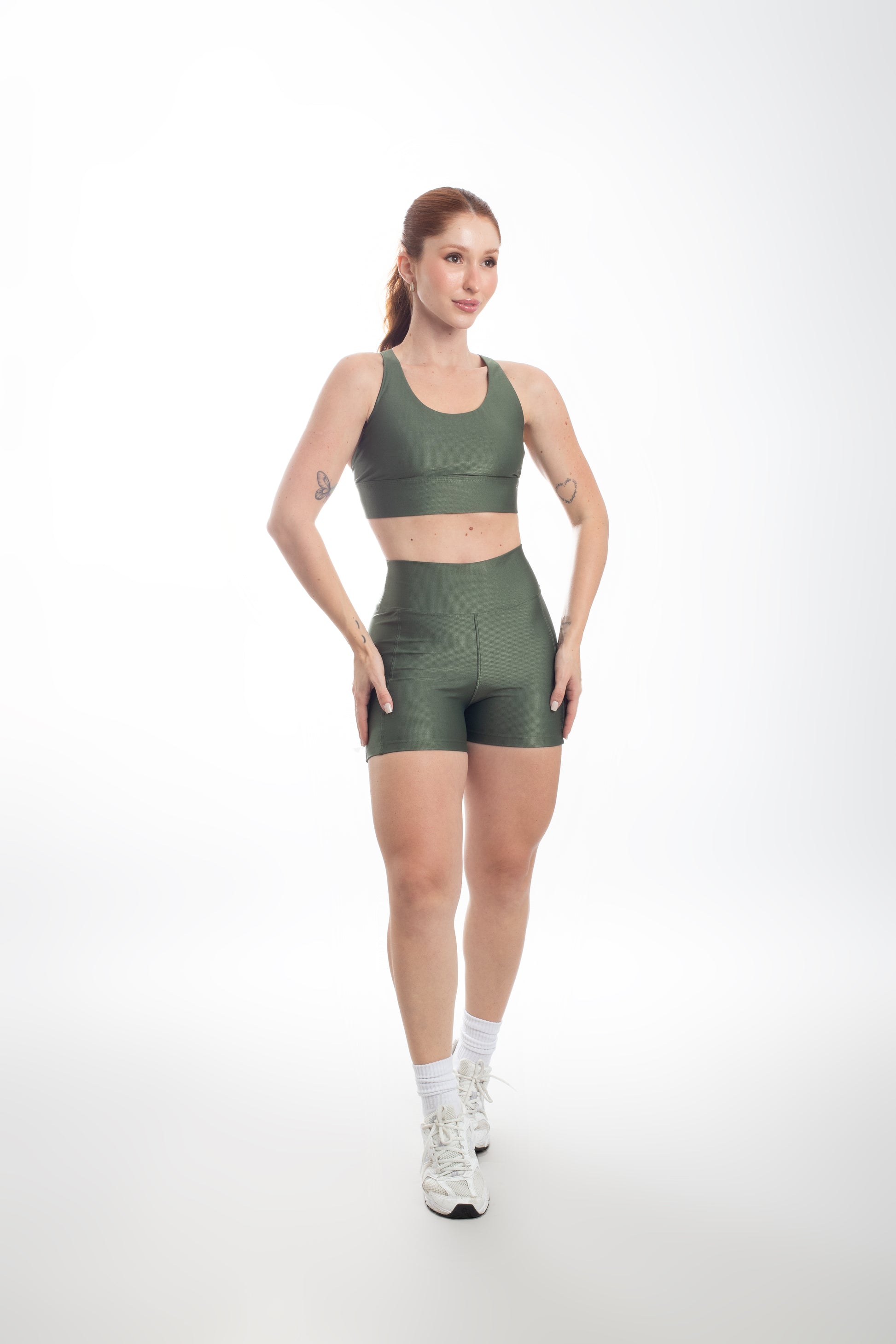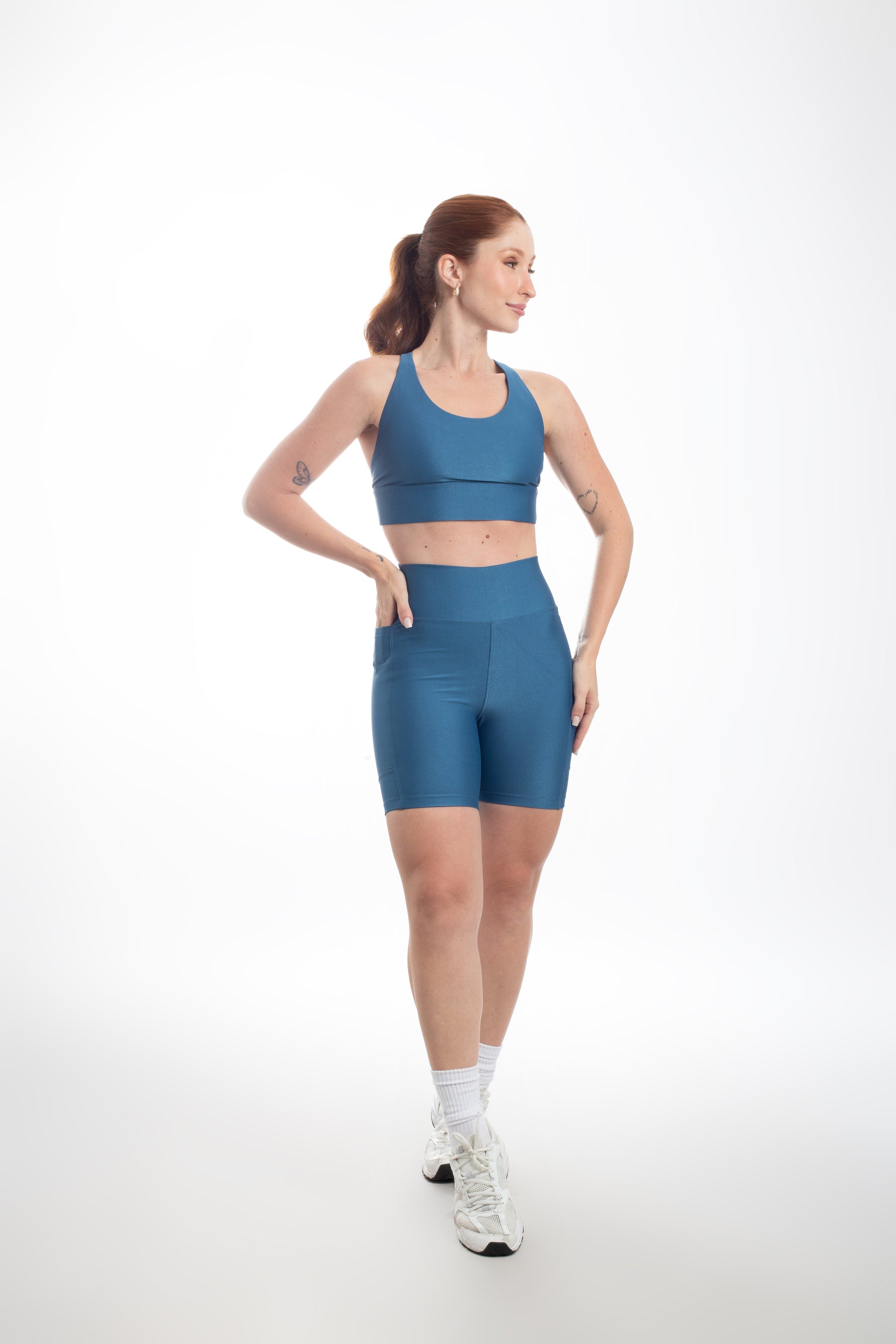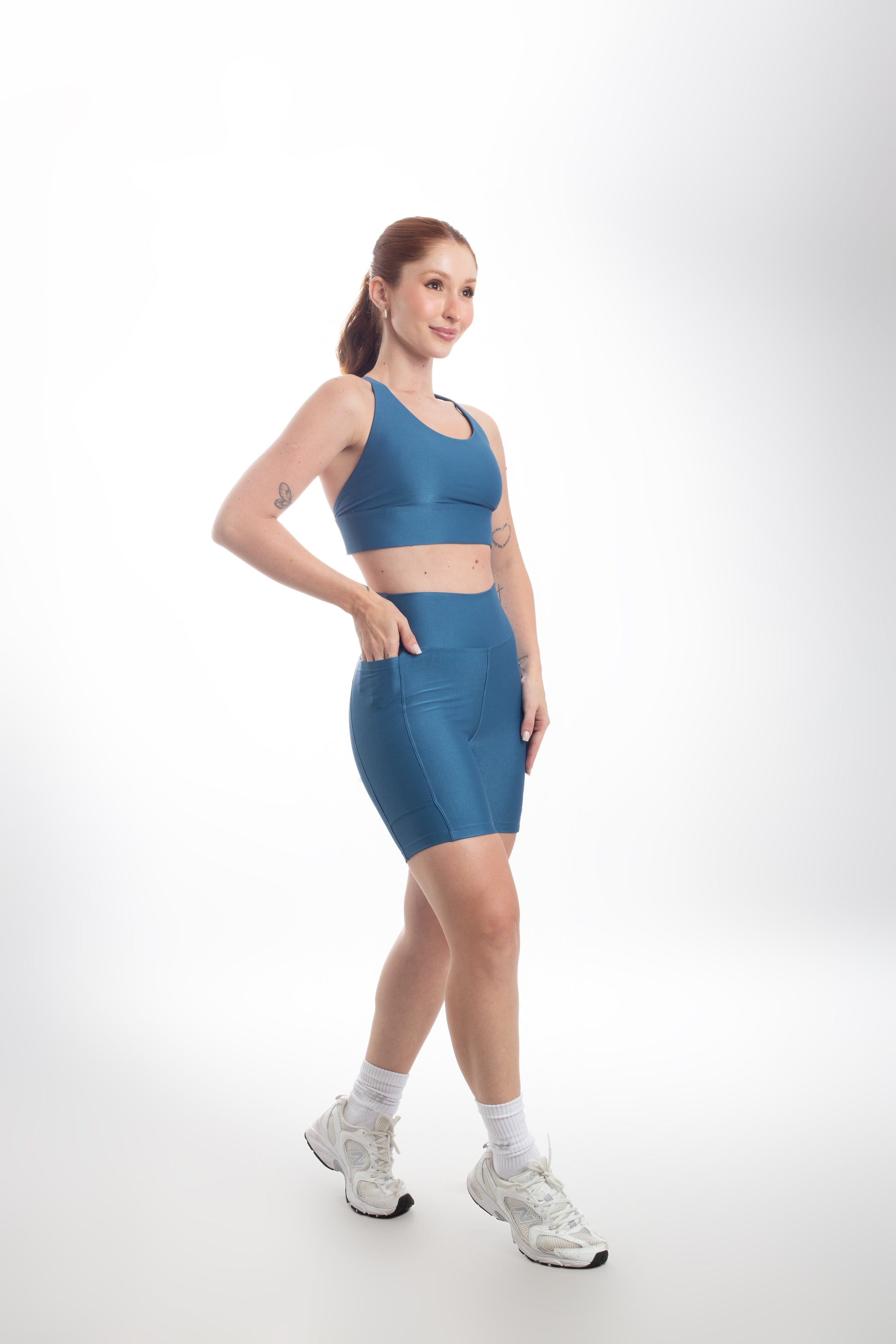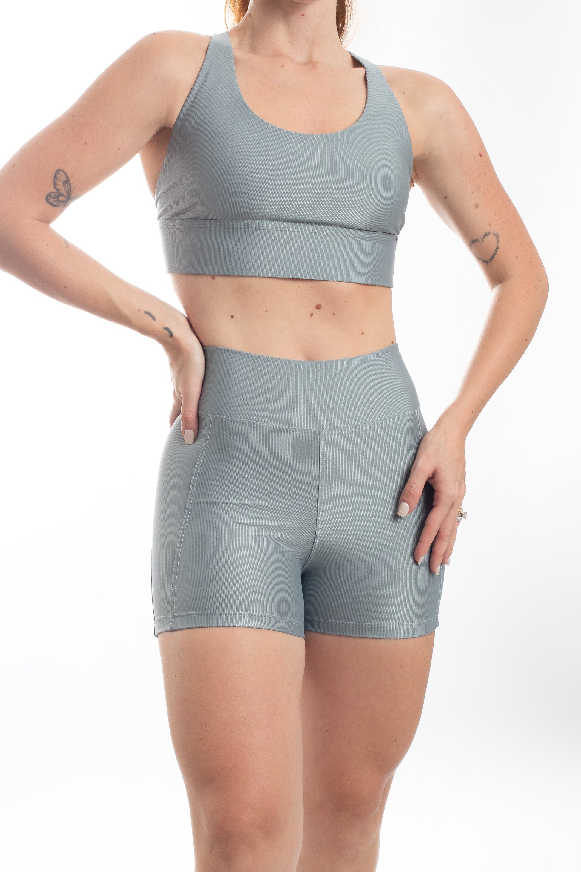 Tecido com fio LYCRA® em média compressão em superfície canelada sofisticada e com leve brilho. Top com bojo removível e forro proporcionando zero transparência.