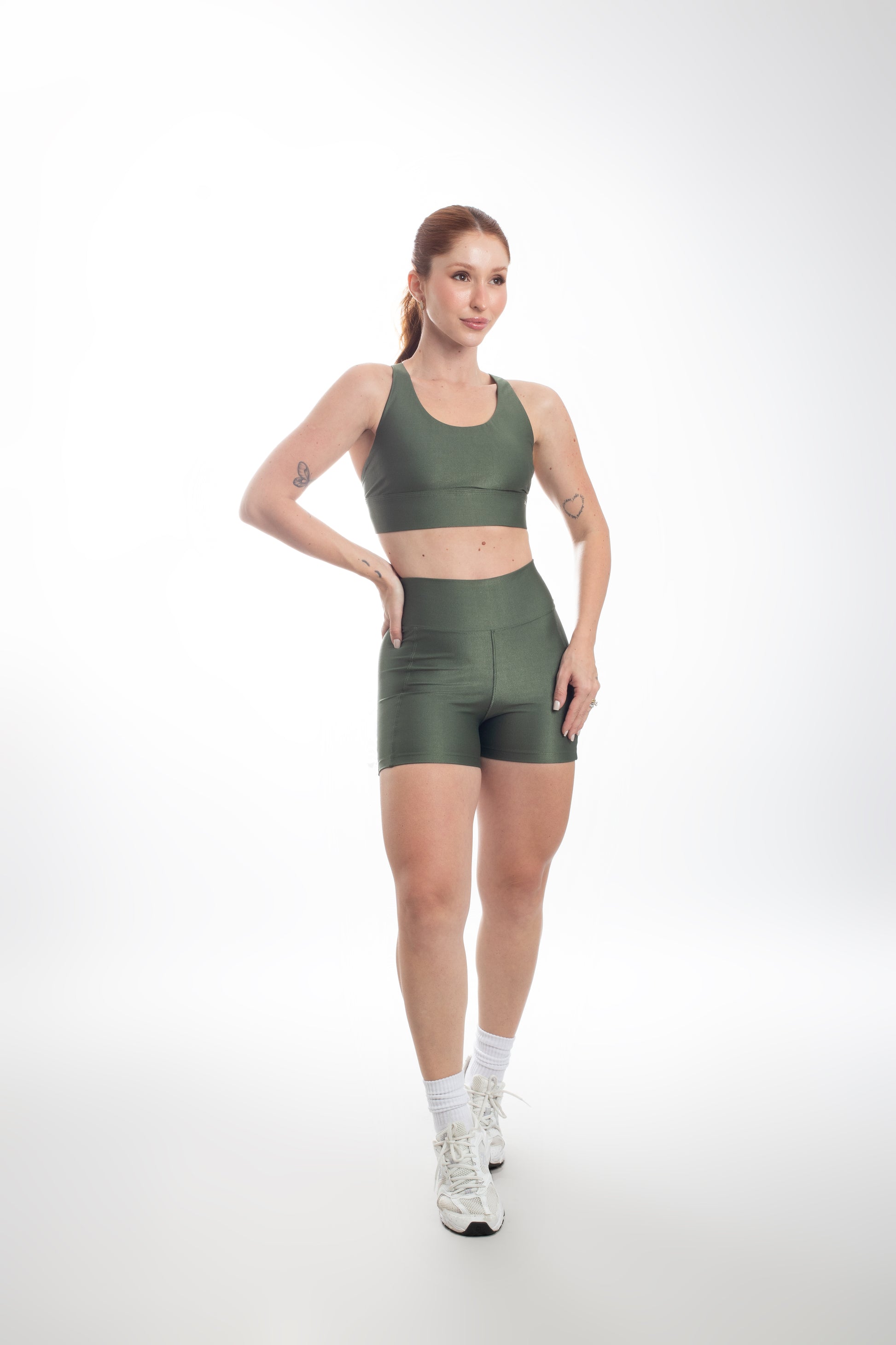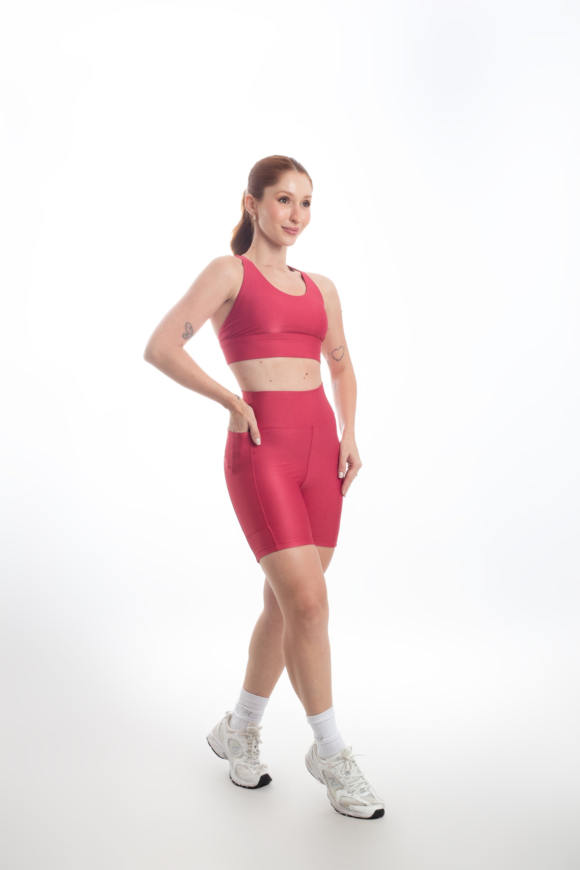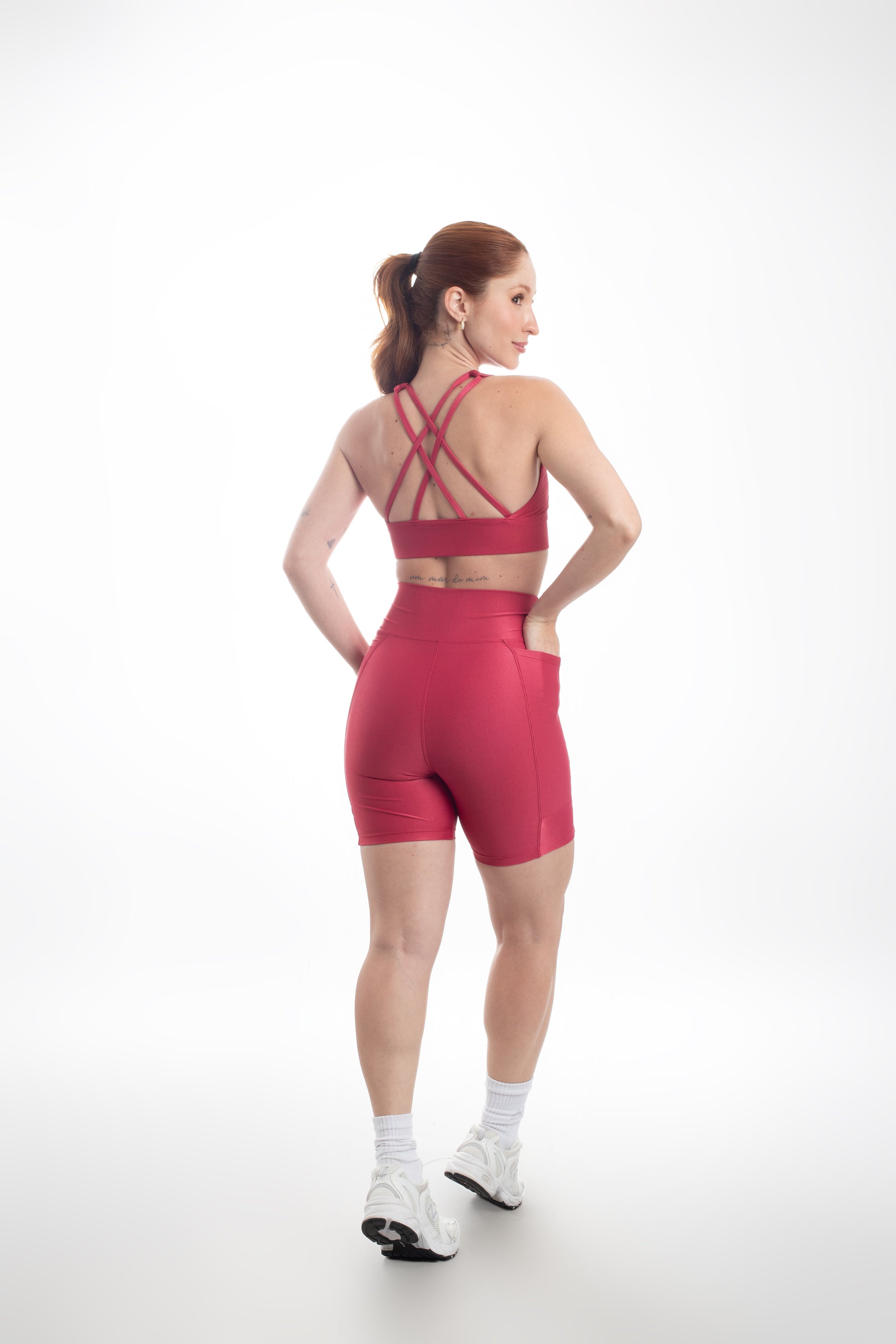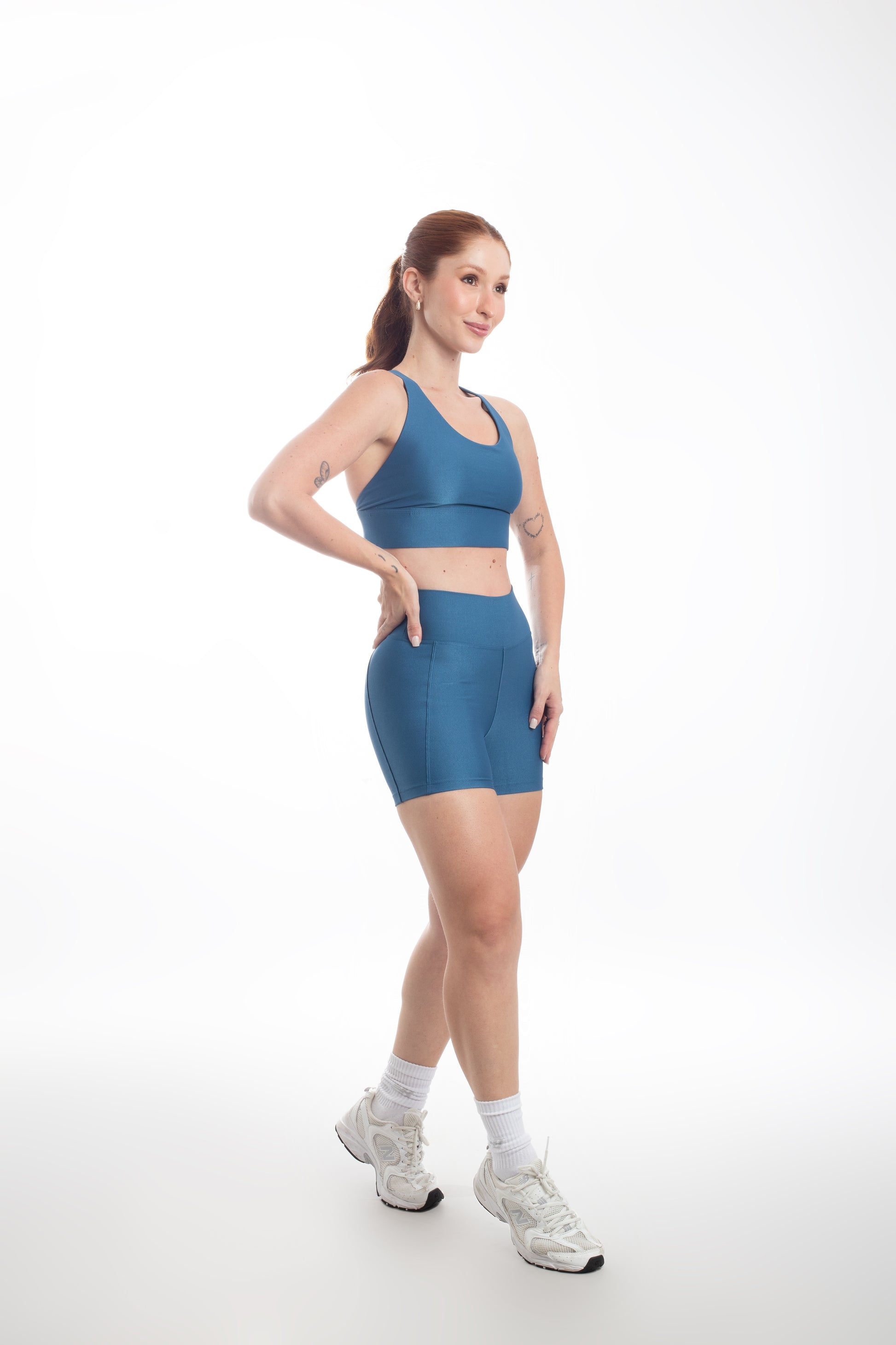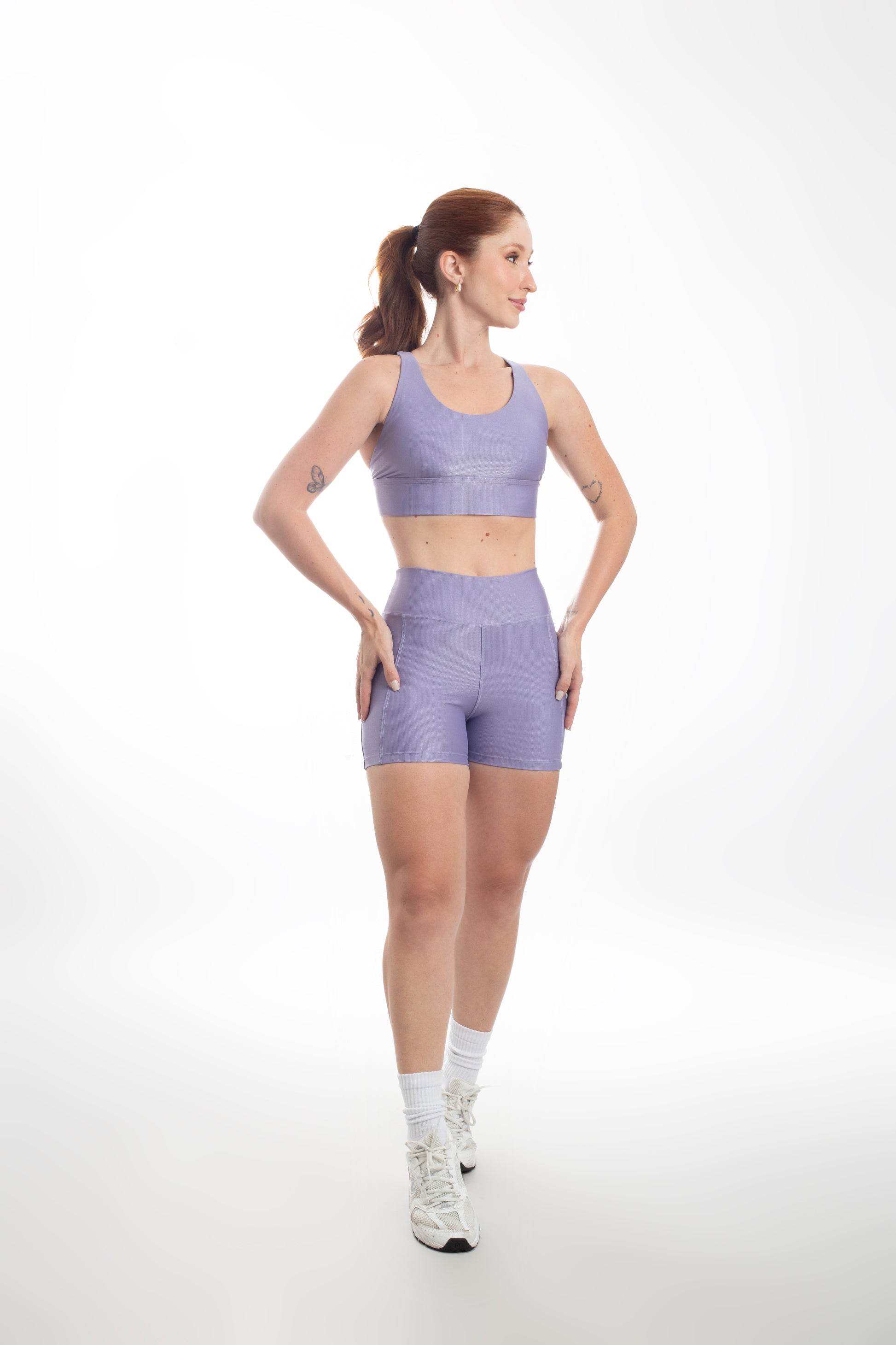 Tecido com fio LYCRA® em média compressão em superfície canelada sofisticada e com leve brilho. Top com bojo removível e forro proporcionando zero transparência.